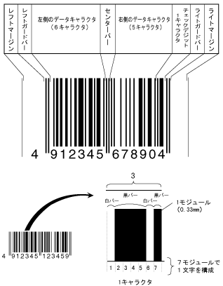 バーコードの構成は、種類により異なりますが、ここではJANのバーコードを中心に説明します。
