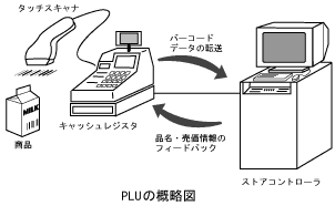 この方式をPLU(プライス・ルック・アップ)といいます。生鮮食料品など、品物の重量により価格が異なる場合には、小売店でバーコード内に価格をいれる場合もあります。