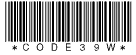 1975年にインターメックス社によって開発され、MIL規格(米国国防省)として採用されたコードです。 表示できるキャラクタは、数字とアルファベット(A〜Z)の他、記号(一,+,/,%,$,.,スペース)も扱います。データはスタートコードとストップコード(*)に挟みます。チェックデジットの不加は任意に選択できます(P30「4-10 チェックエジット算出方法」参照)。 データの長さに対する制限はなく、桁数はリーダーの読み取り範囲に合せて変更できます。 コードの幅は、同じ桁数を表わそうとした場合、NW-7やITFと比べて広く必要ですが、コードの誤読率は他のコードより低くなります。 そのため、自動車業界等、工業用(FA用)として現在最も広く使用されています。 コントロールシンボルを付加することによって、フルアスキーをコード化することが可能です。フルアスキーのシンボルをデコードするには、フルアスキーサポートのスキャナが必要です。